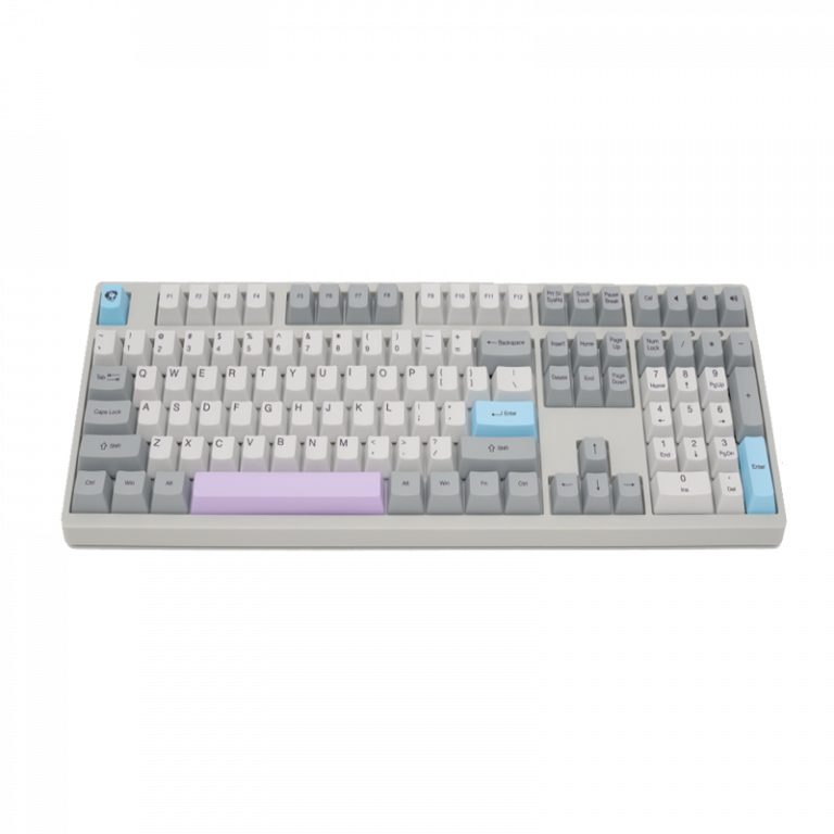 Ấn tương đầu tiên mà chiếc bàn phím cơ AKKO 3108 Silent mang tới cho ta có lẽ chính là cách phối màu rất dịu mắt, đó là sự kết hợp giữa keycap màu trắng và xám nhạt chủ đạo, được tô điểm bằng những chiếc keycap lẻ màu Xanh sáng và Tím. Thêm với vỏ phím màu xám rất hợp tone, giúp cho chiếc phím cơ có vẻ ngoài chúng tôi đánh giá là cho cảm giác rất dễ chịu, đẹp một cách đơn giản nhưng không hề nhạt nhòa mà rất có điểm nhấn.