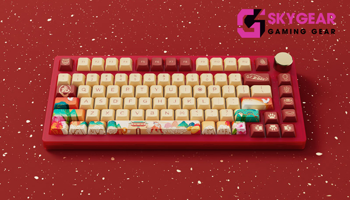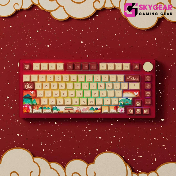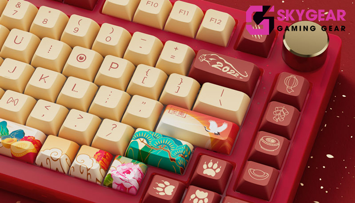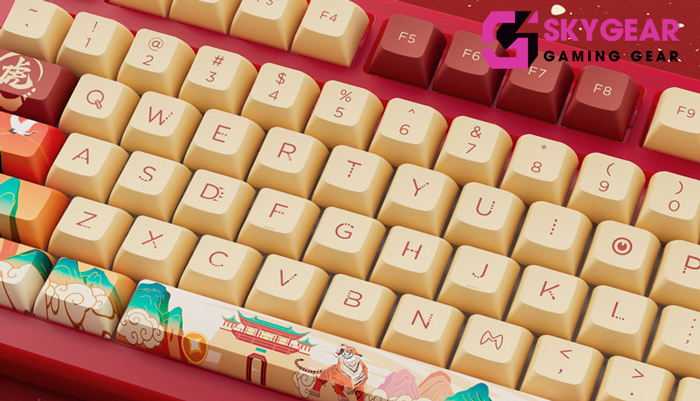 Bộ Keycap trên bàn phím AKKO PC75B Plus Year of Tiger góp đã phần không nhỏ tạo nên vẻ đẹp không kém phần độc lạ. Nhà sản xuất đã lựa chọn chất liệu nhựa PBT có độ bền cao song song là công nghệ in Dye-Subbed cho từng ký tự và hoạ tiết trên keycap. Nhờ vào công nghệ trên thì người dùng không phải lo nghĩ nhiều về vấn đề phai màu trên keycap