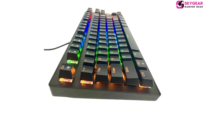 Bàn phím cơ GM355 Multimode ( Blue switch) full-size đơn giản nhưng không kém phần bắt mắt. Trục hỗ trợ thay thế nóng có thể dễ dàng điều chỉnh, cáp USB -A to Type -C, Plate. Khung được làm bằng kim loại cho cảm giác sử dụng được chắc chắn hơn. Ba loại trục có sẵn gồm đen, đỏ và xanh tùy chọn. Có khóa phím FN + Win để tránh các trường hợp bị văng màn hình do nhấn nhầm nút khi chơi game hoạt các hoạt động khác. Bố cục phím cao và thấp, thiết kế tiện lợi cho việc gõ văn bản với tốc độ nhanh cho cảm nhận phím tốt và chính xác. Thiết kế tương thích với nhiều thiết bị dễ dàng kết nối bạn chỉ cần cắm đầu dây USB vào là sử dụng ngay. Vì hầu hết các thiết bị hiện nay đều trang bị cổng USB nên bạn không cần phải lo đến việc nối khi mua sản phẩm về.