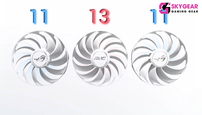 Với công nghệ Axial sẽ giúp khả năng tản nhiệt trên card đồ họa được tốt hơn. Với 3 quạt được thiết kế theo công nghệ Axial sẽ cho ra diện tích bề mặt lớn hơn đồng thời cánh quạt cũng được tăng lên với 13 cánh ở trung tâm và 11 cánh ở hai bên, qua đó làm tăng hiệu quả tản nhiệt lên đáng kể. Một điểm cực kỳ ấn tượng mà ASUS đã trang bị trên những chiếc quạt này ở quạt trung tâm sẽ quay ngược với hai quạt còn lại điều này làm giảm sự hỗn loạn của luồng khí và làm tăng hiệu quả tản nhiệt tổng thể của card màn hình