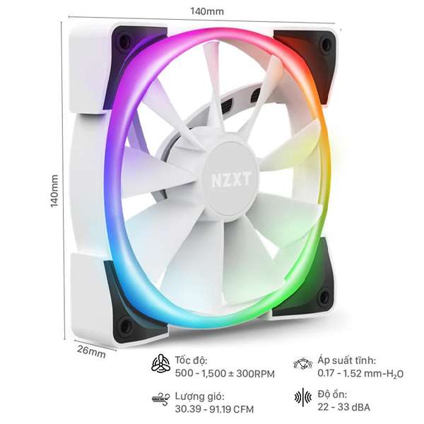 Tích hợp hoàn toàn vào hệ sinh thái HUE và HUE 2, Fan Case NZXT AER RGB 2 TWIN STARTER 140MM mang đến không khí tối ưu và các tùy chỉnh ánh sáng tiên tiến. Kết nối tối đa 5 sản phẩm trên mỗi kênh LED và đồng bộ hóa chúng bằng CAM để có hiệu ứng ánh sáng tuyệt vời hoạt động hài hòa hoàn hảo. Với các vòng bi động và các mẹo nhỏ, cánh quạt Fan Case NZXT AER RGB 2 TWIN STARTER 140MM giúp tăng cường khả năng làm mát trong khi giảm thiểu tiếng ồn.