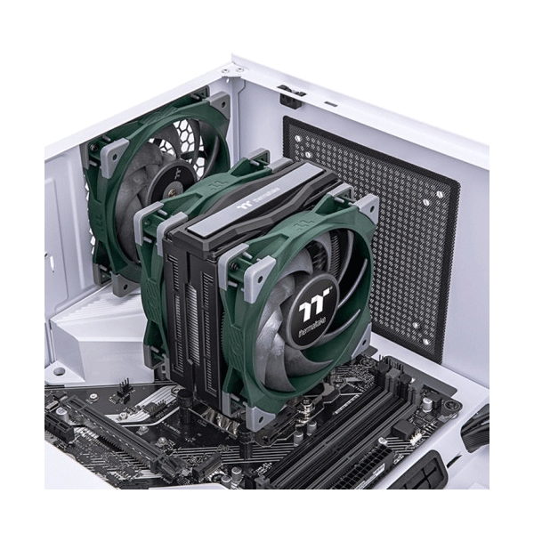 Tản Nhiệt CPU Thermaltake Toughair 510 Racing Green là một phiên bản mới của dòng Toughair cho phép người dùng có thể kết hợp với các thành phần khác của PC có màu racing green giống nhau để tạo thành chiếc PC lý tưởng của bạn. Sản phẩm là một quạt kép tháp đơn được thiết kế làm mát không khí với 4 ống dẫn nhiệt chạy qua các cánh tản nhiệt, các ống dẫn nhiệt hình chữ U giúp tăng lưu thông nhiệt tạo ra khả năng tản nhiệt tốt hơn trong hệ thống của bạn và hỗ trợ công suất lên đến 180W. Ống dẫn nhiệt 4 x Ø6 mm chạy trực tiếp vào CPU và keo tản nhiệt, thiết kế hình chữ U tạo ra sự lưu thông hoàn hảo cho hiệu suất làm mát CPU tốt hơn.