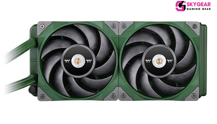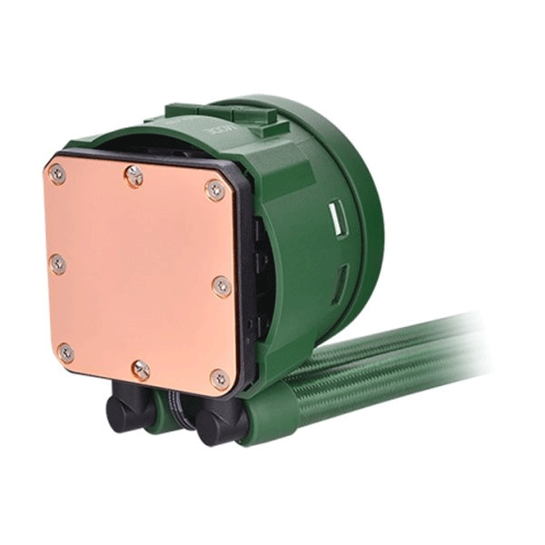 Trên tản nhiệt nước Thermaltake Toughliquid 240 ARGB Racing Green cho phép người dùng có thể chuyển đổi các hiệu ứng ánh sáng bằng các khối nước tráng gương thiết kế với một bộ điều khiển tích hợp do đó người dùng có thể dễ dàng điều chỉnh các chế độ chiếu sáng khác nhau, tốc độ và màu sắc của khối nước, giúp quản lý cáp dễ dàng trong khi tận hưởng hiệu ứng ánh sáng với khả năng truy cập trực tiếp. Tản nhiệt nước đảm bảo hiệu suất làm mát tốt nhất bằng cách trang trang bị 2 quạt TOUGHFAN 12 màu Racing Green. TOUGHFAN 12 Racing Green cung cấp tốc độ hoạt động tối đa lên đến 2000RPM và tạo ra lưu lượng gió ổn định 58,35 CFM với áp suất tĩnh là 2,41 mmH2O trong khi đó vẫn duy trì độ ồn âm thanh ở mức thấp 22,3 dB-A. Tấm đế bằng đồng hiệu suất cao giúp tăng tốc độ dẫn nhiệt, máy bơm chất lượng cao và đáng tin cậy cho phép cho phép lưu thông nước tối đa, giữ cho tấm đồng liên tục mát, ống bay hơi thấp làm giảm sự bay hơi của chất làm mát.