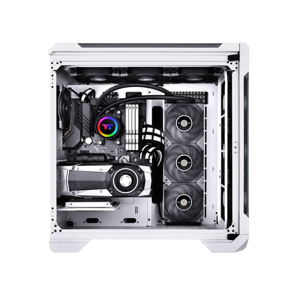 Tản nhiệt nước Thermaltake Toughliquid 360 ARGB Black là bộ làm mát chất lỏng tất cả trong một được trang bị TOUGHFAN 12 với bộ điều khiển tích hợp và nắp xoay với 6 đèn LED, có thể được điều khiển bời bo mạch chủ tương thích 5V RGB. Trên tản nhiệt nước có nắp xoay cho phép người dùng xoay nắp dễ dàng ngay cả sau khi lắp đặt, do đó người dùng có thể xoay logo TT sao cho đạt được tính thẩm mỹ cao nhất. Được trang bị 2 TOUGHFAN 12, tản nhiệt cung cấp một tốc độ quạt cao lên đến 2000RPM đảm bảo được kết quả làm mát tốt nhất.
